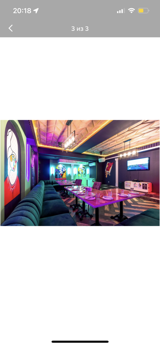 Очень красивое караоке Кабинка Алмата супер дизайн интерьер очень понравился Кухня очень вкусная Столько скидок, приятно удивили
