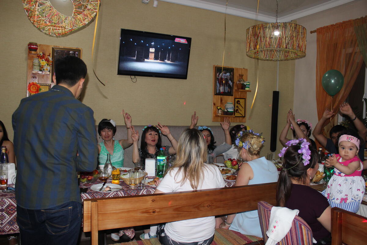 Отметили день рождение. администрация кафе предложила провести праздник в стиле молдавской деревни. девочки все были в веночках! 1) кухня выше всех похвал! Баранья нога просто бомба! салаты хорошие, порции большие. спасибо отдельное поварам! 2) обслуживание достойное! хорошо подготовленные официанты! Спасибо еще раз за вечер! нам очень понравилось! решите пожалуйста вопрос с музыкой уж больно хотелось потанцевать
