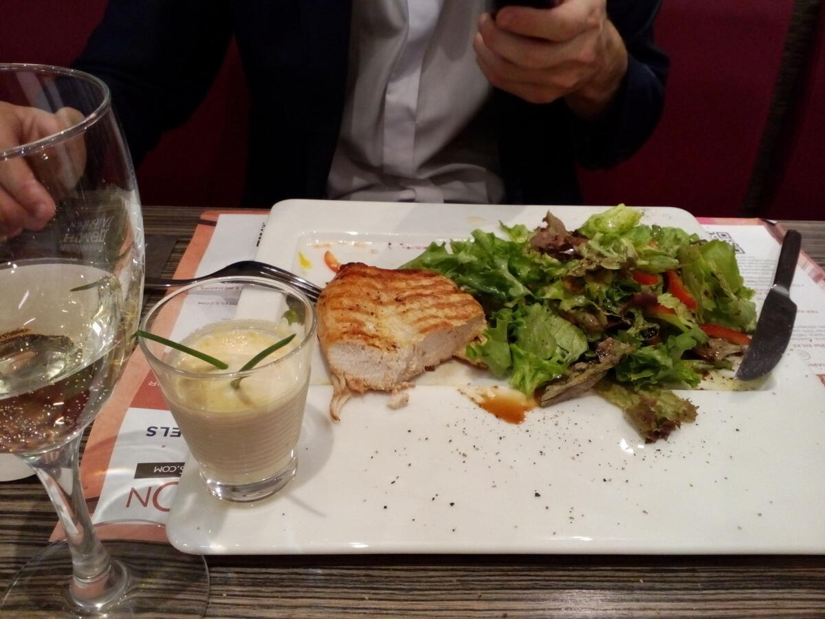 Были на прошлой неделе в ресторане IBIS KITCHEN. Супруг заказал индейку с микс салатом, я заказала десерт Тирамису и чай. Ехали с работы и решили где нибудь поесть. Индейка мужу понравилась мягкая сочная и гарнир лёгкий, а соус был необычный сырный, официант вежливо порекомендовал вино к индейка. Я сделала выбор из десерта и попробовала Тирамису. Тирамису был настоящий и вкусный. Я такого сколько была в местах разных ещё не пробовала. Главное он натуральный. Официант сказал что этот десерт пользуется успехом в ресторане. Чай заказала листовой, чай был ароматный. Попросила сказать что за брэнд, говорят Ньюби, но в обычных магазинах не продают его. Ресторан уютный, хоть и заметна после новогодняя тишина, но нам понравилось. Безлимитный высокоскоростной интернет. Уютно комфортно, не дорого, вкусно. Кстати у них нет 10% обслуживания в меню. Там хорошо проводить бизнес обеды и ужины. Ушли мы в общем довольные. Спасибо персоналу за гостеприимство.